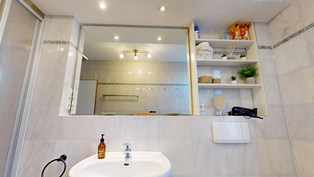 - 1 Badezimmer mit Dusche, WC und Föhn