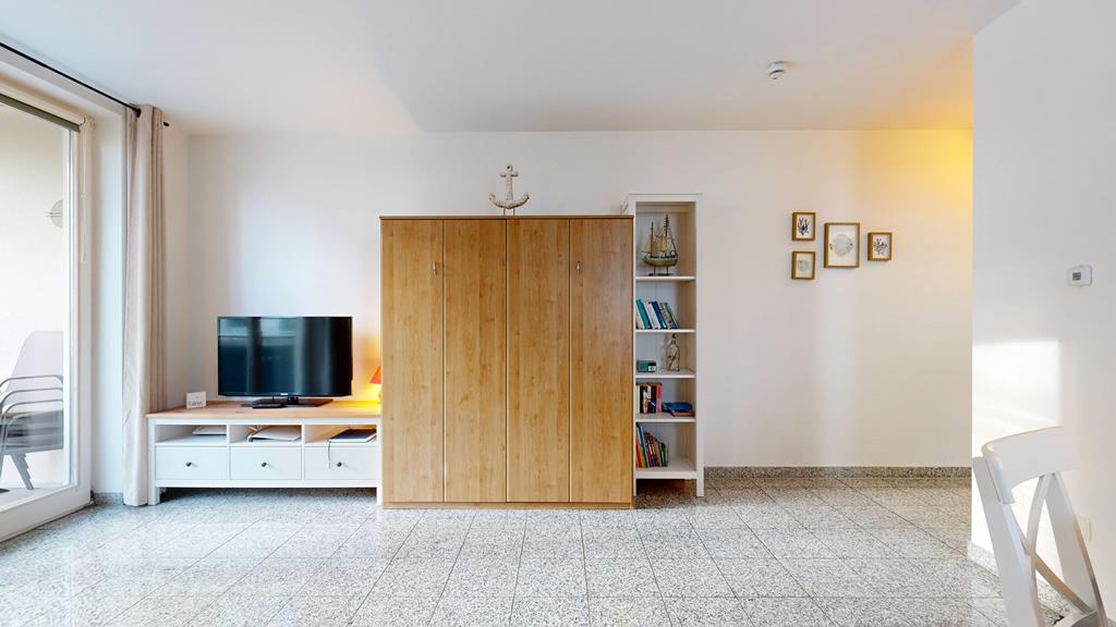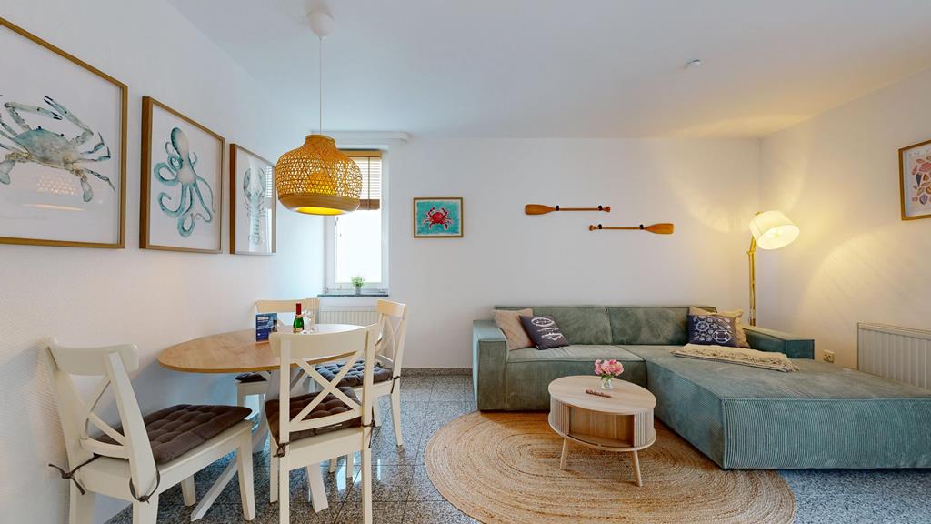 - Wohnzimmer: Couchgarnitur, Kabel-TV, Radio, Schrankbett mit Platz für 1-2 Personen, Essplatz, kostenfreies WLAN