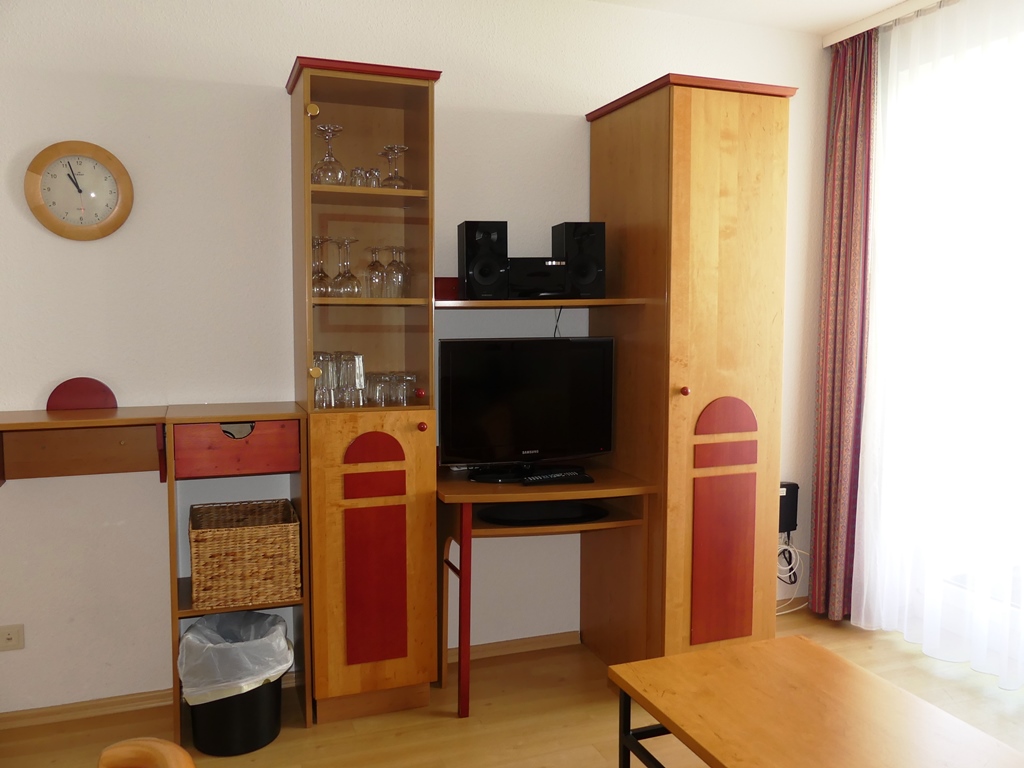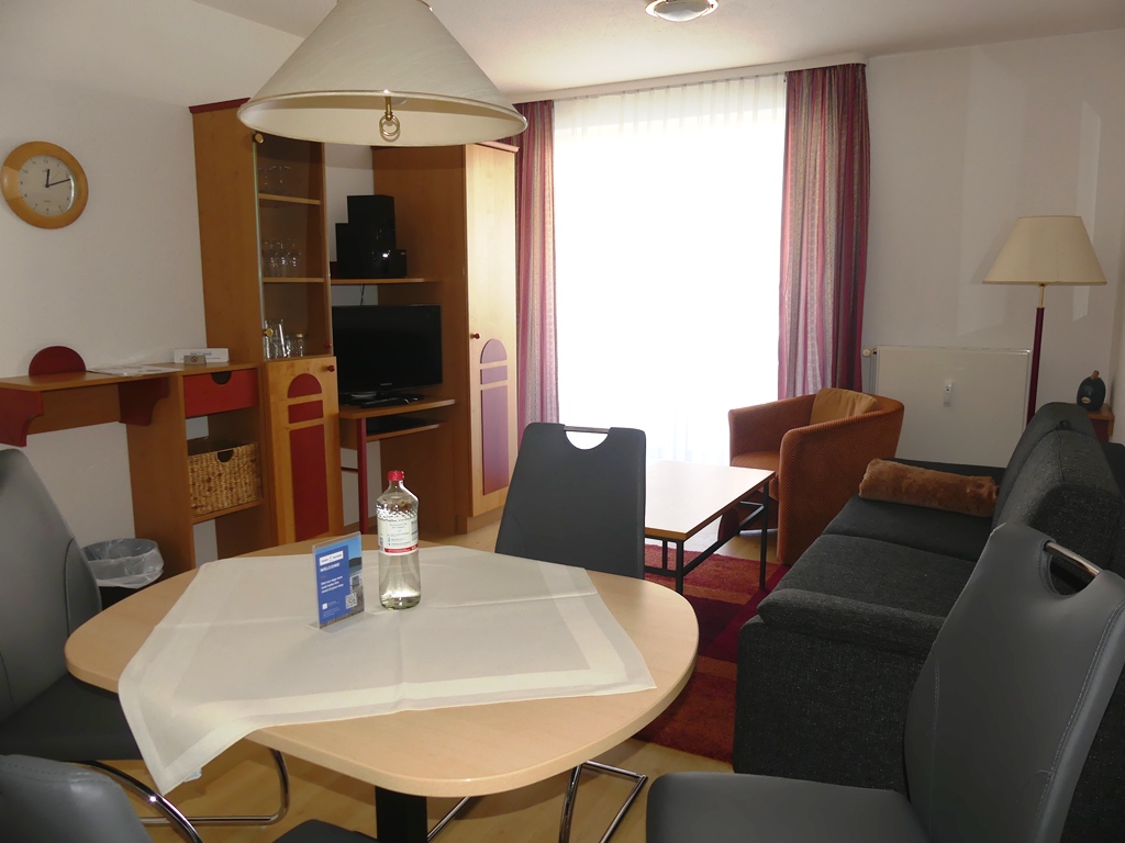 - Wohnzimmer: Couchgarnitur (Schlafgelegenheit für 2 Personen), Kabel-TV, Stereoanlage, Internetanschluss (WLAN), Esstisch