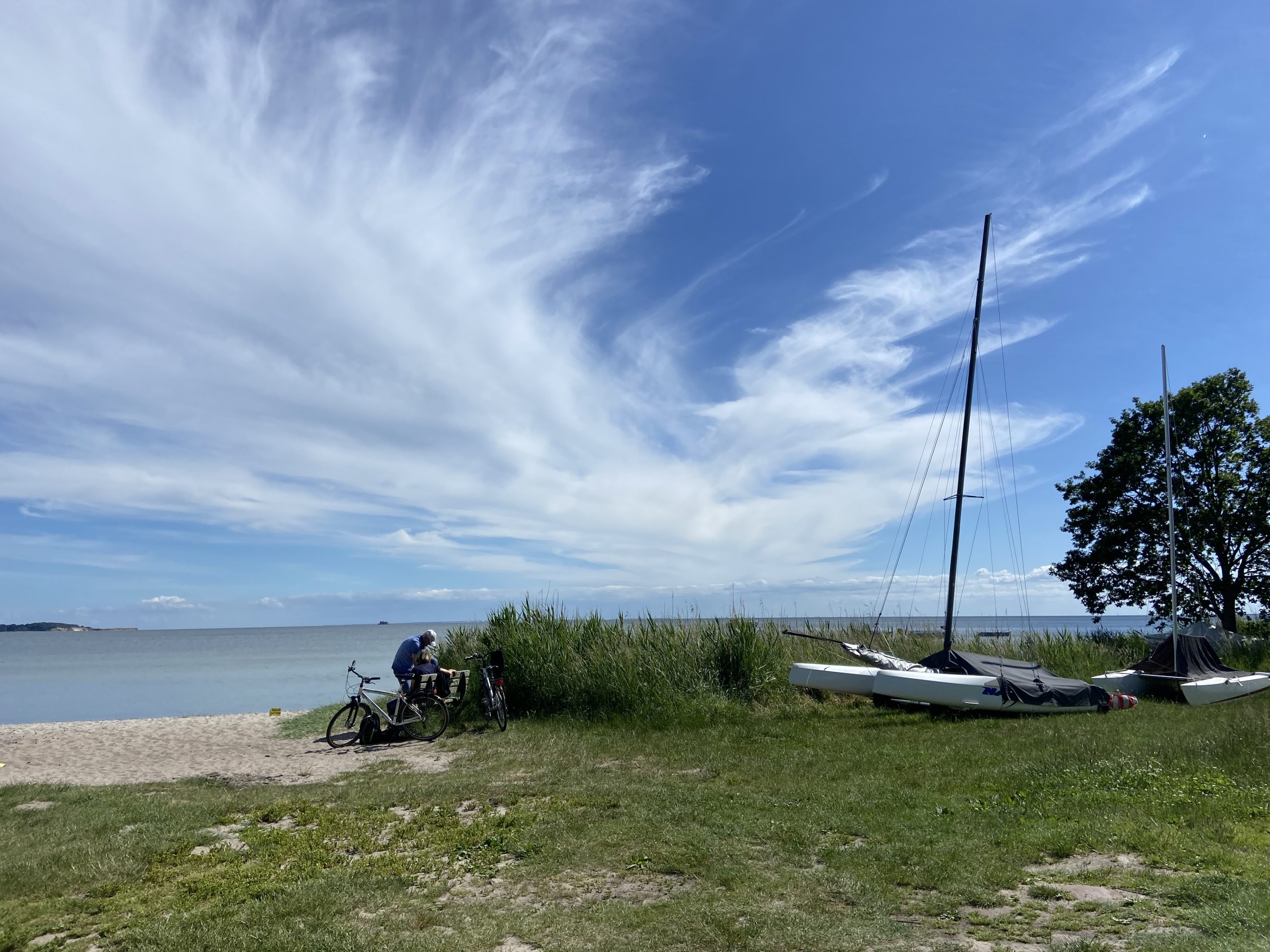 Ein besonderes Highlight ist der natürliche Strand direkt vor Ort. Dank des seichten Boddenwassers, das sich schneller erwärmt als die Ostsee, eignet er sich ideal für Familien mit kleinen Kindern. Auch Angler finden hier beste Bedingungen – vor allem im Mai, wenn der Hornfisch in den Bodden zieht.