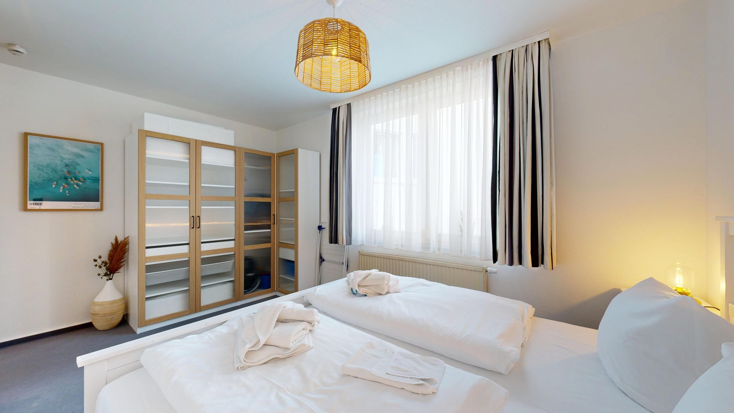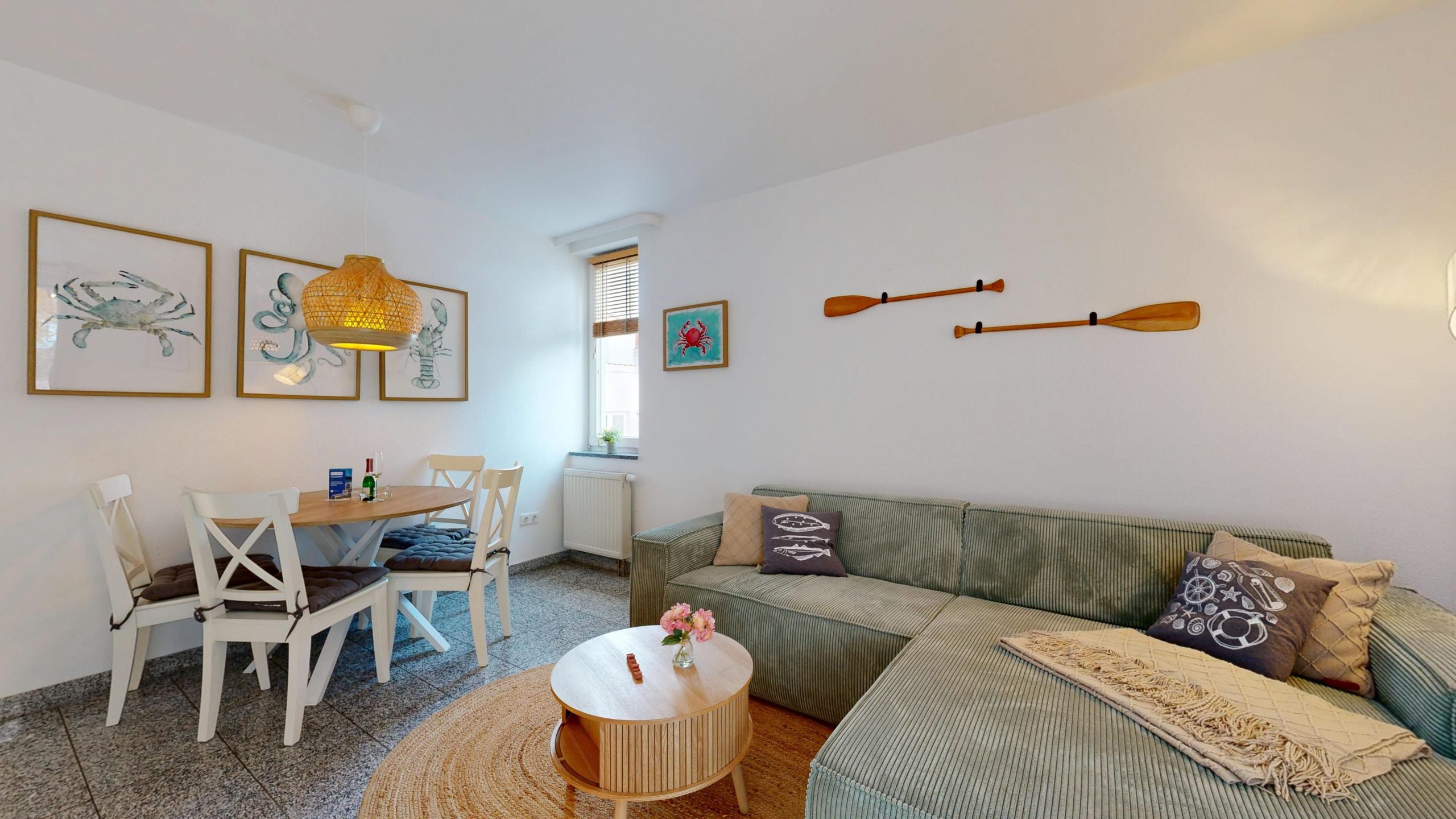 Für alle, die es komfortabel mögen: Die Ferienwohnung ist strandnah gelegen. Im Haus gibt es eine Tiefgarage ein Schwimmbad mit Sauna – und dazu eine gemütliche Wohnung, die zum Ankommen und Bleiben einlädt.