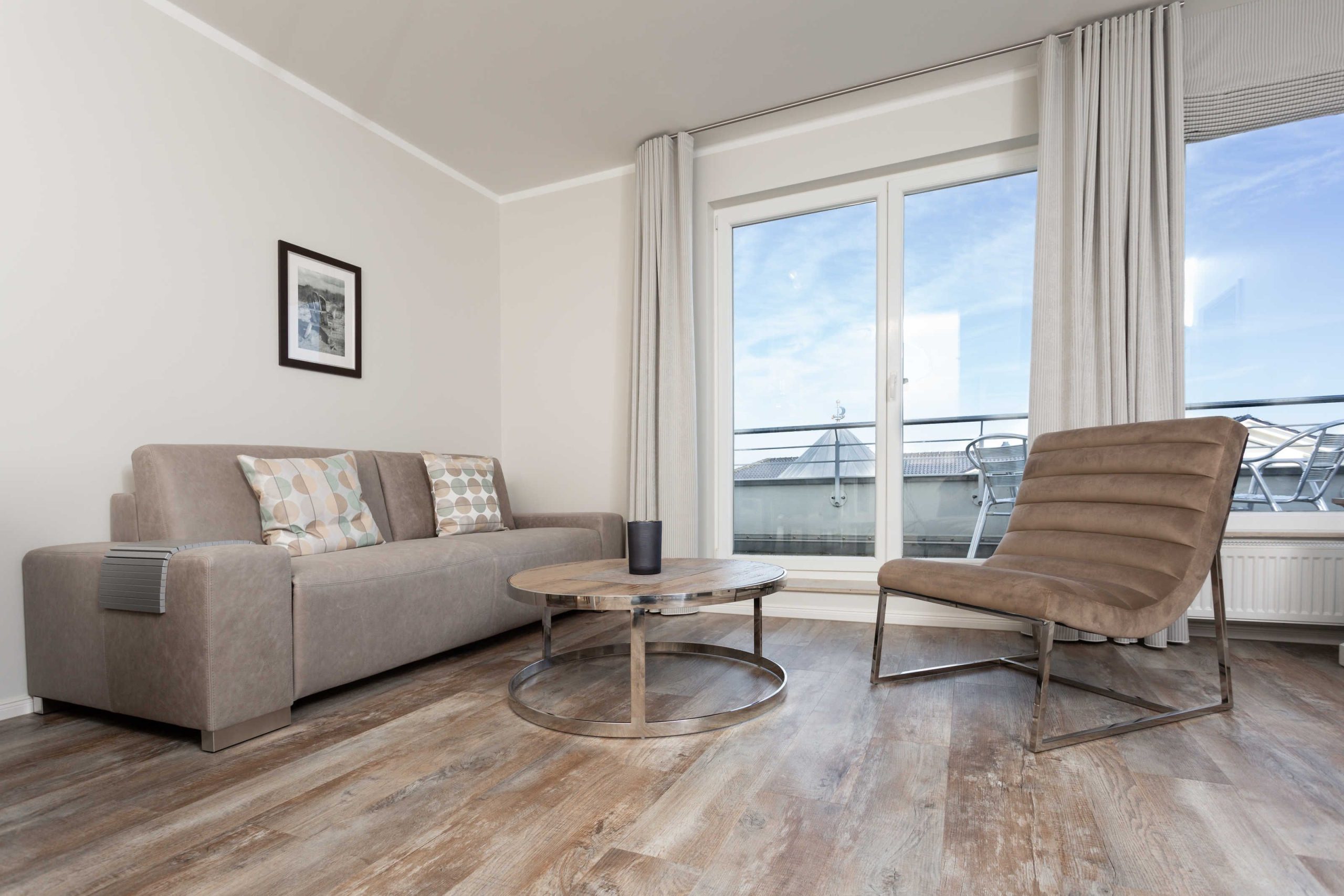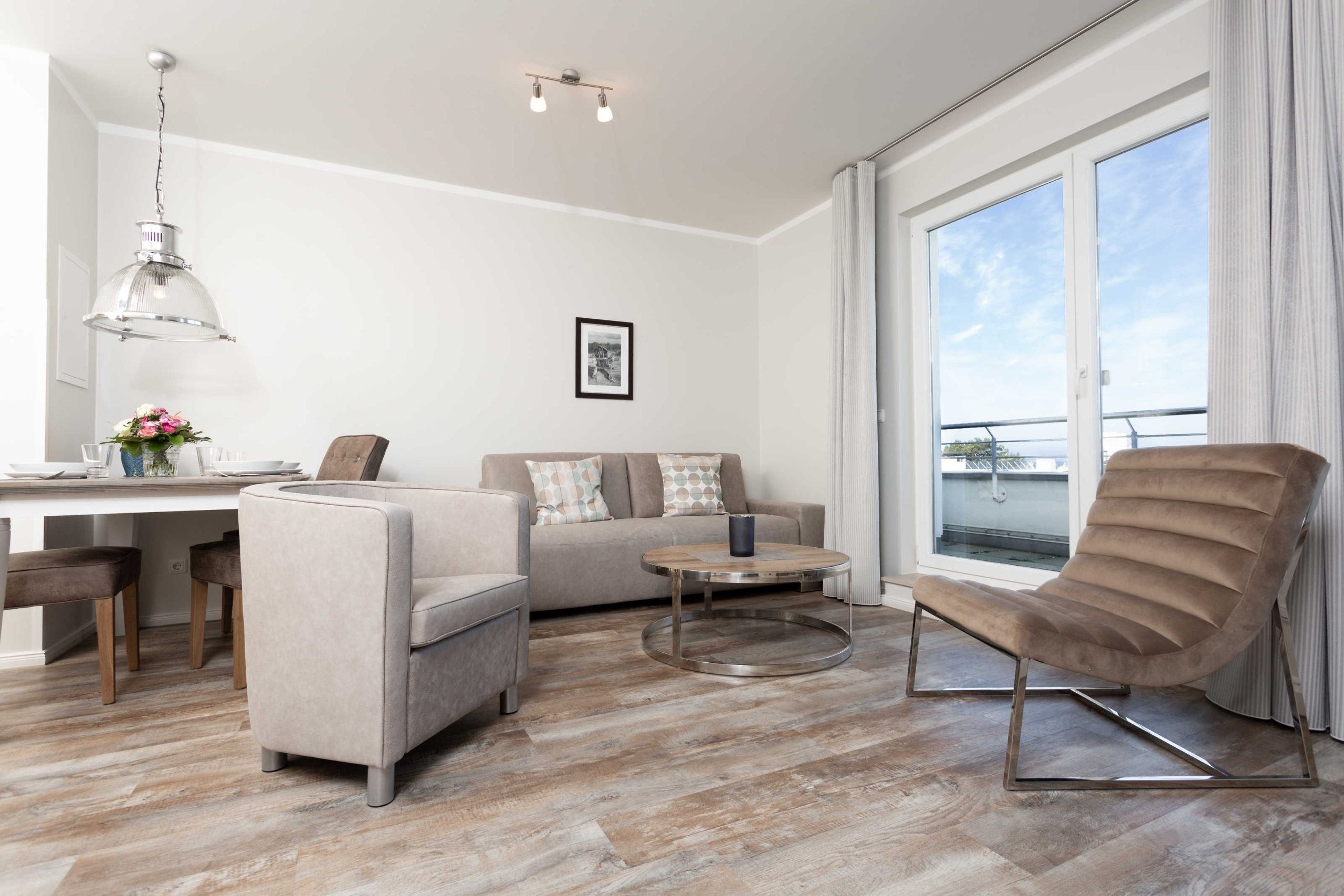Ferienwohnung mit Balkon für 2-4 Personen mit hochwertiger Möblierung im 3. OG mit 1 Schlafzimmer (2 Zimmer / 50²):