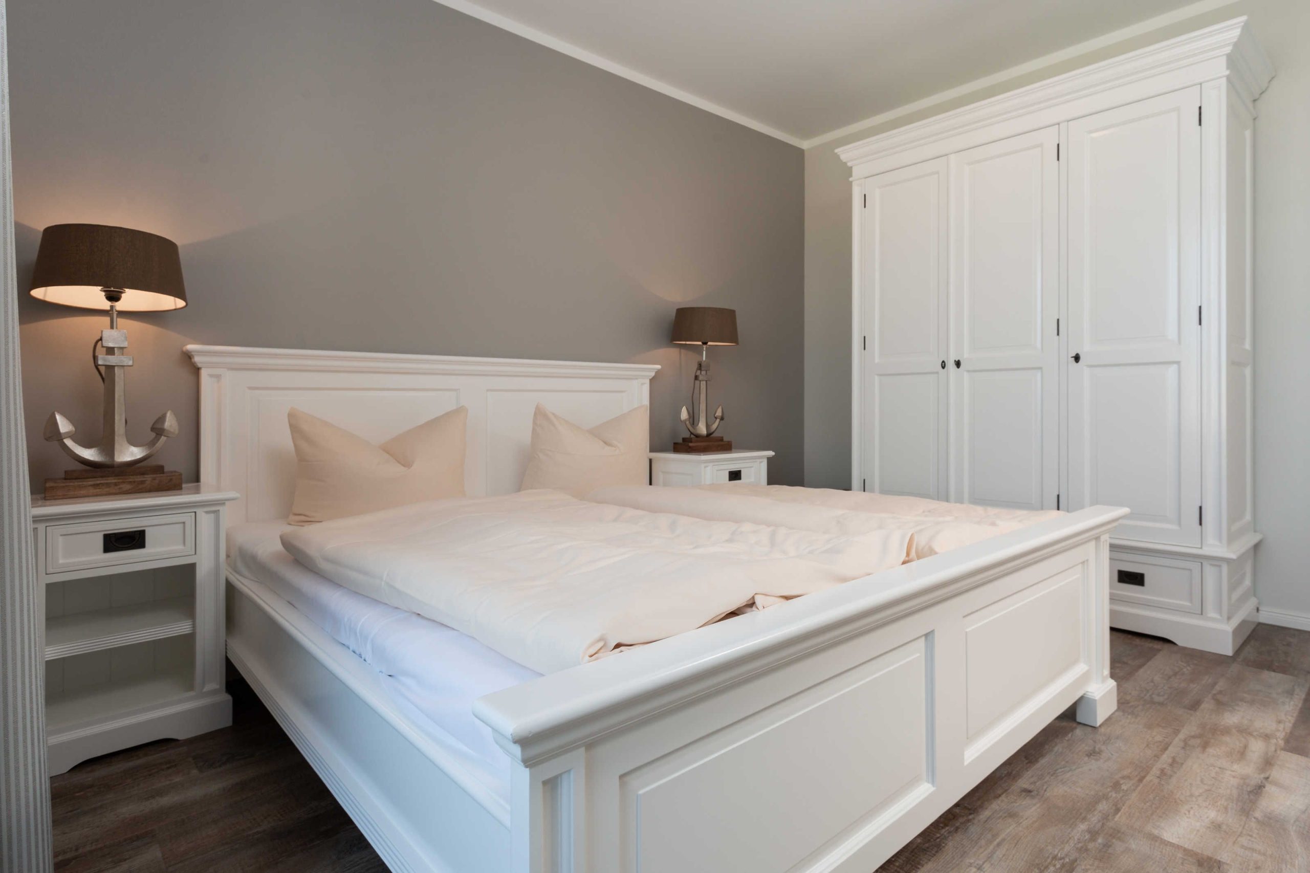 * 1 Schlafzimmer mit einem Doppelbett, Kleiderschrank und TV