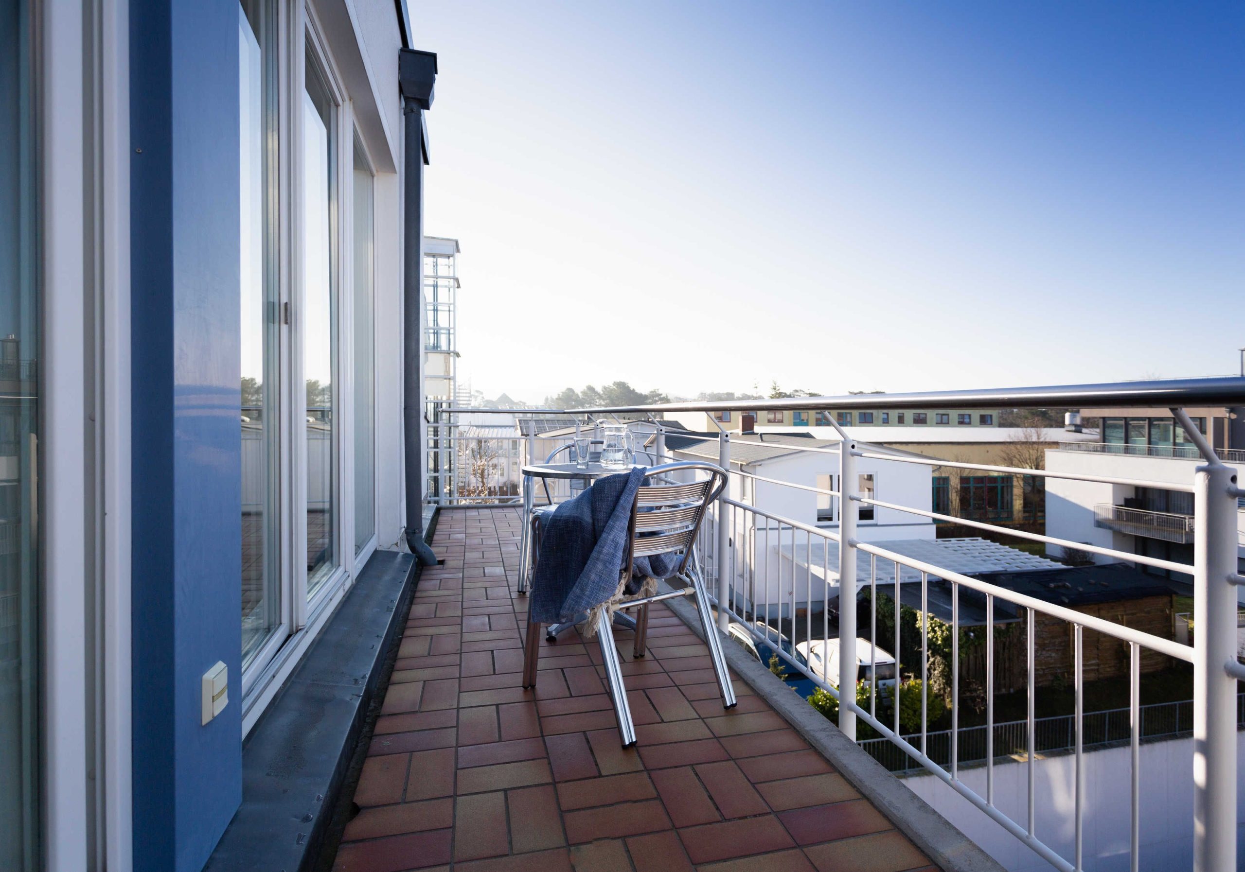 Moderne Ferienwohnung in Strandnähe mit Sauna, Fitnessraum und Fahrstuhl im HausGroßzügige Ferienwohnung mit hochwertiger Möblierung und Balkon für 2-6 Personen im 3. OG mit 2 Schlafzimmern (3 Zimmer / 72 m²):