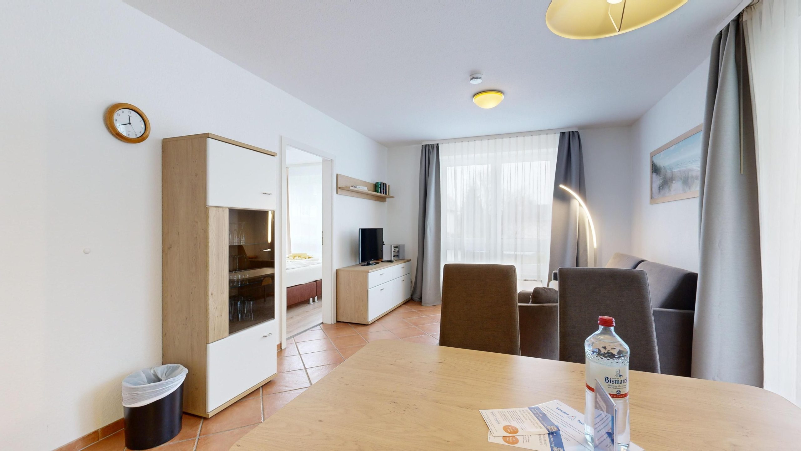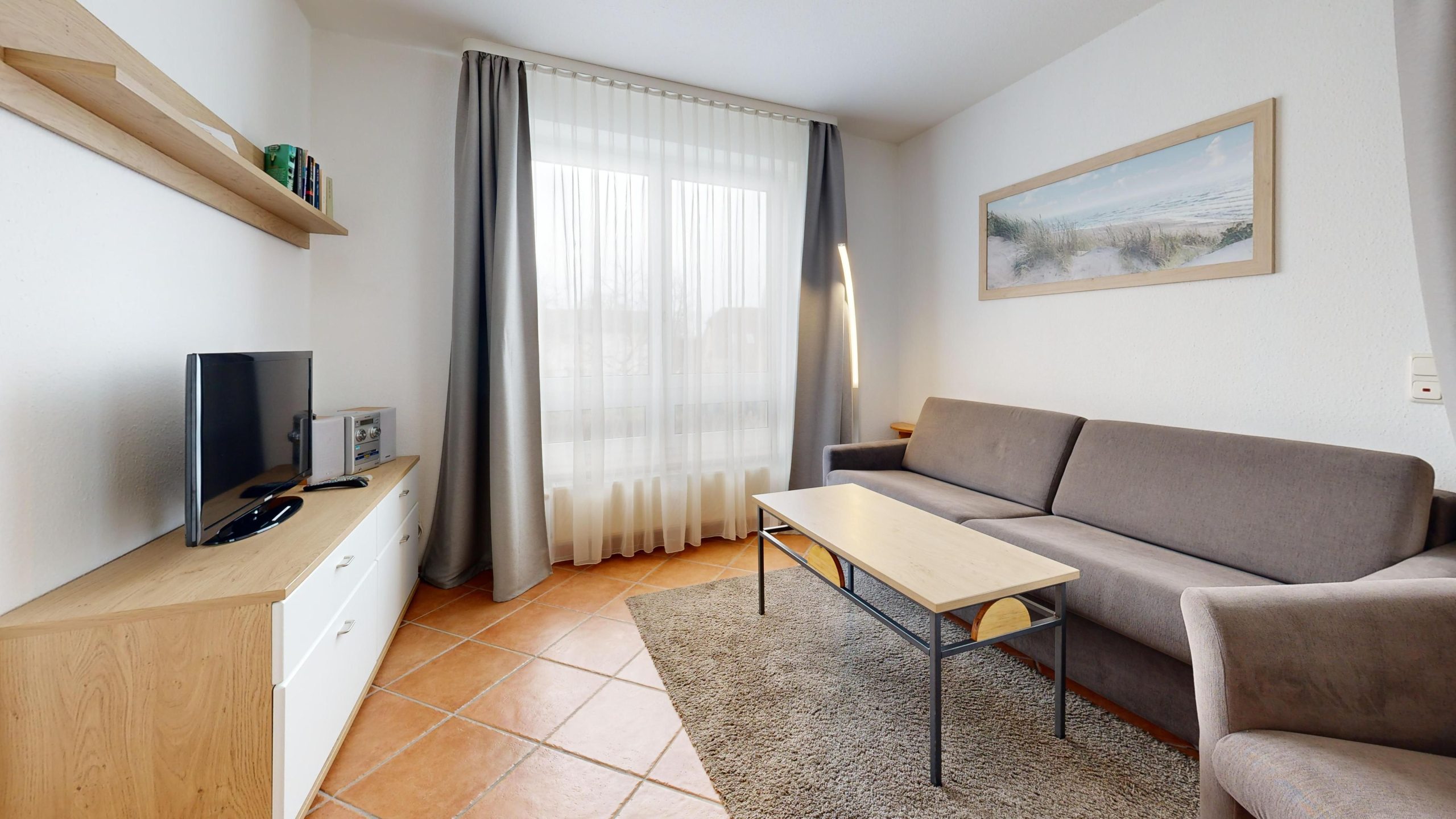 * Wohnzimmer: Couchgarnitur (Schlafgelegenheit für 2 Personen), Kabel-TV, Stereoanlage, Internetanschluss-WLAN, Esstisch
