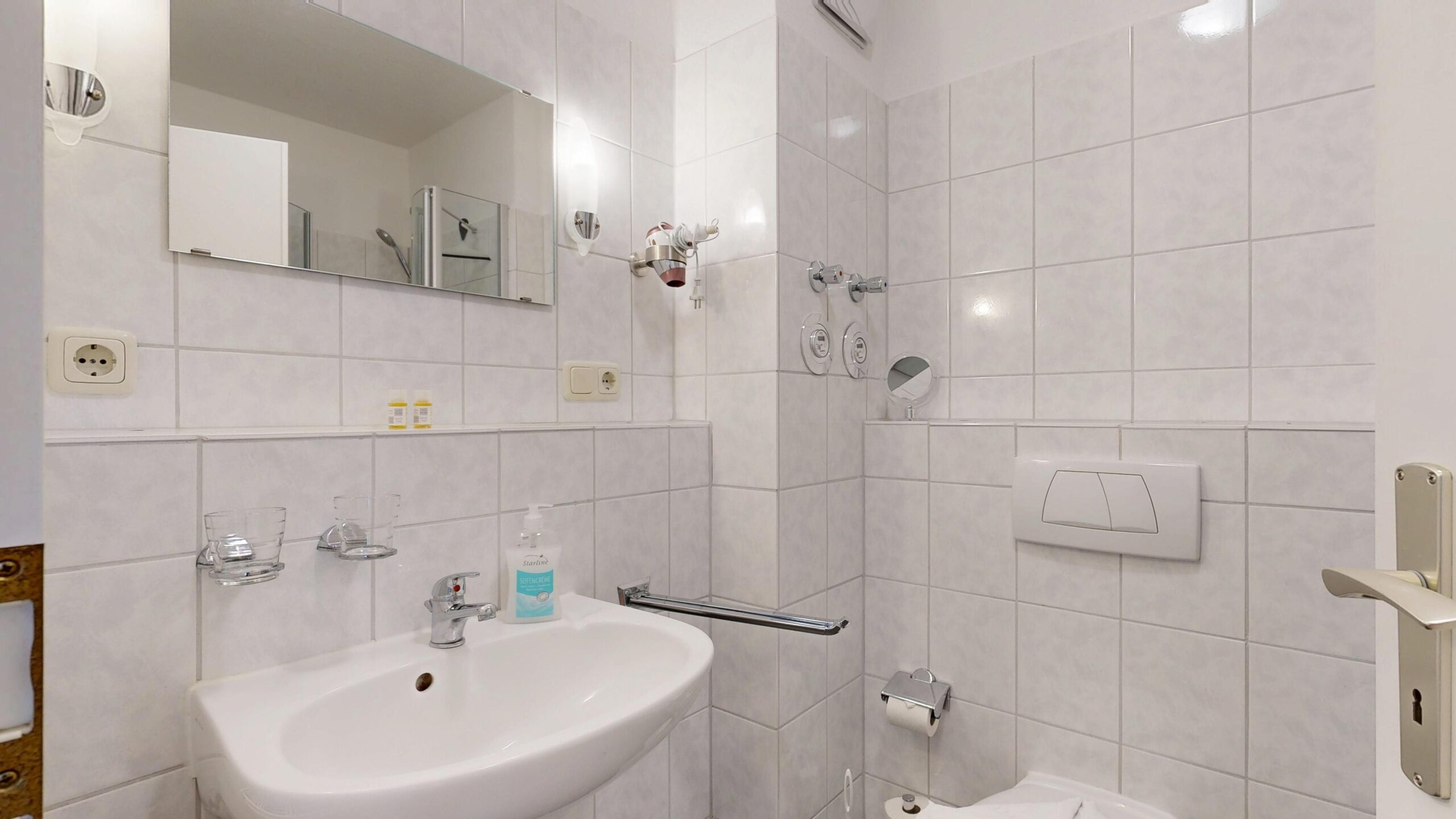 * Dusche (Tiefeinsteiger), WC, Haartrockner