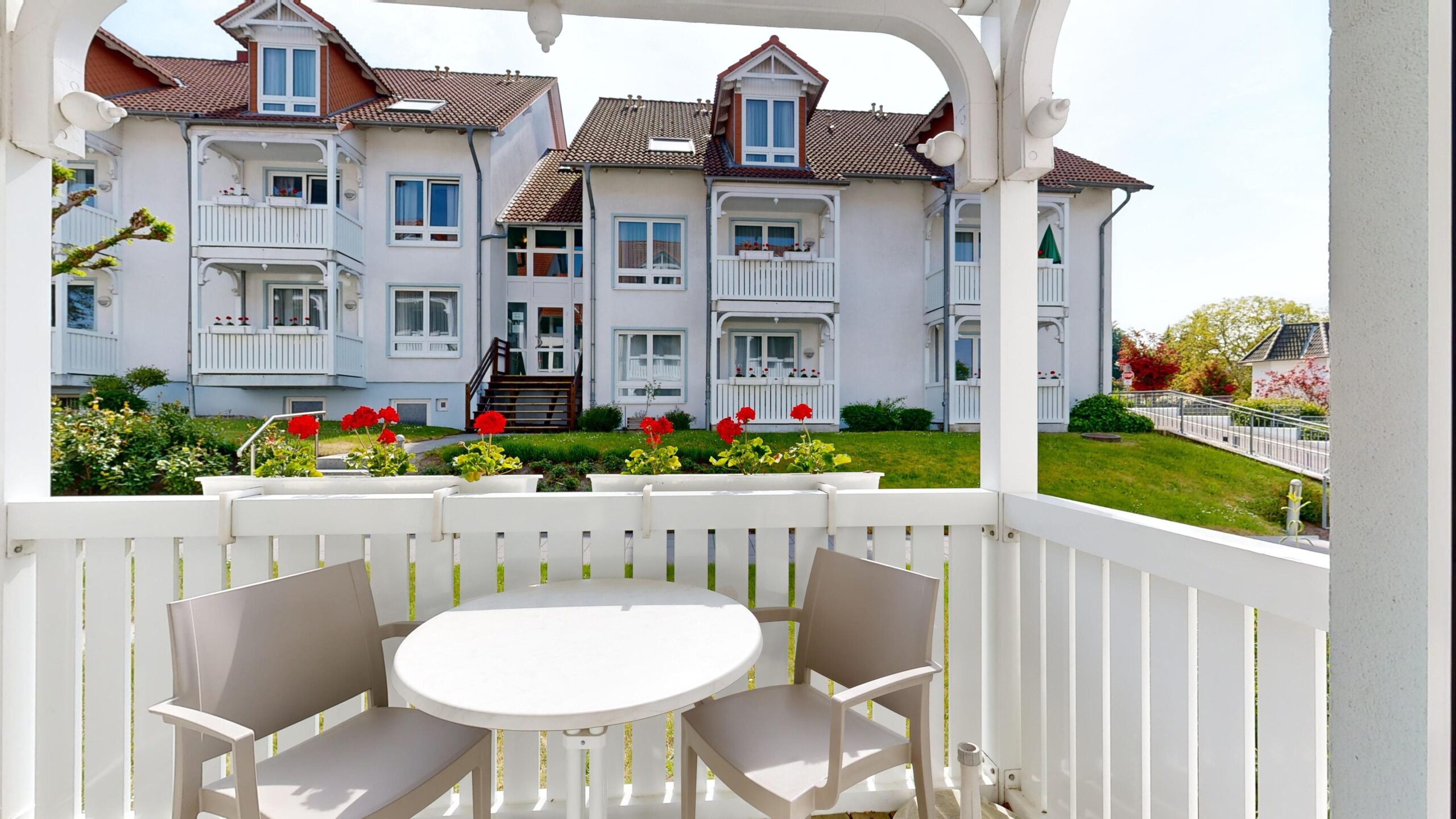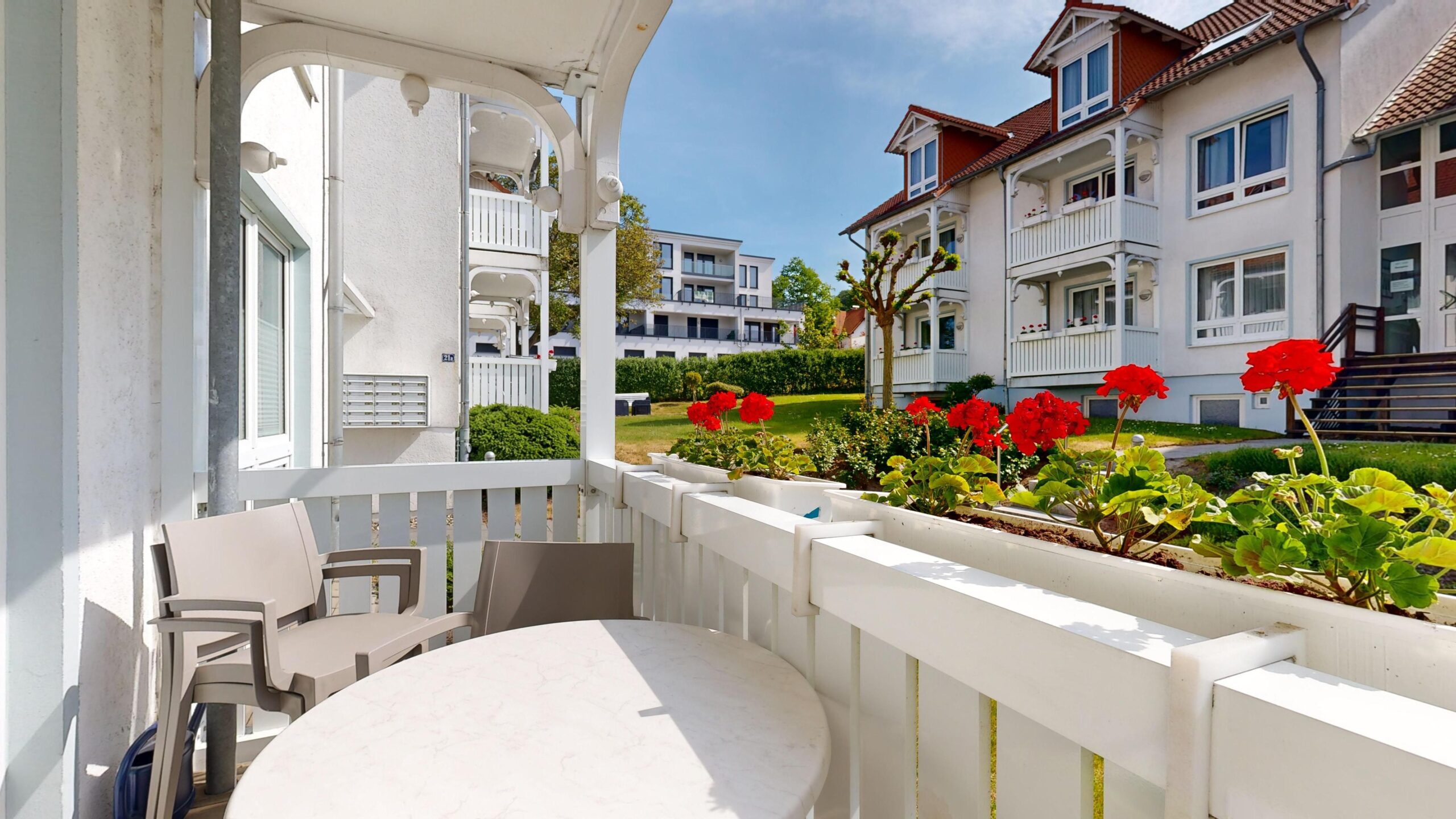 * möblierter Balkon