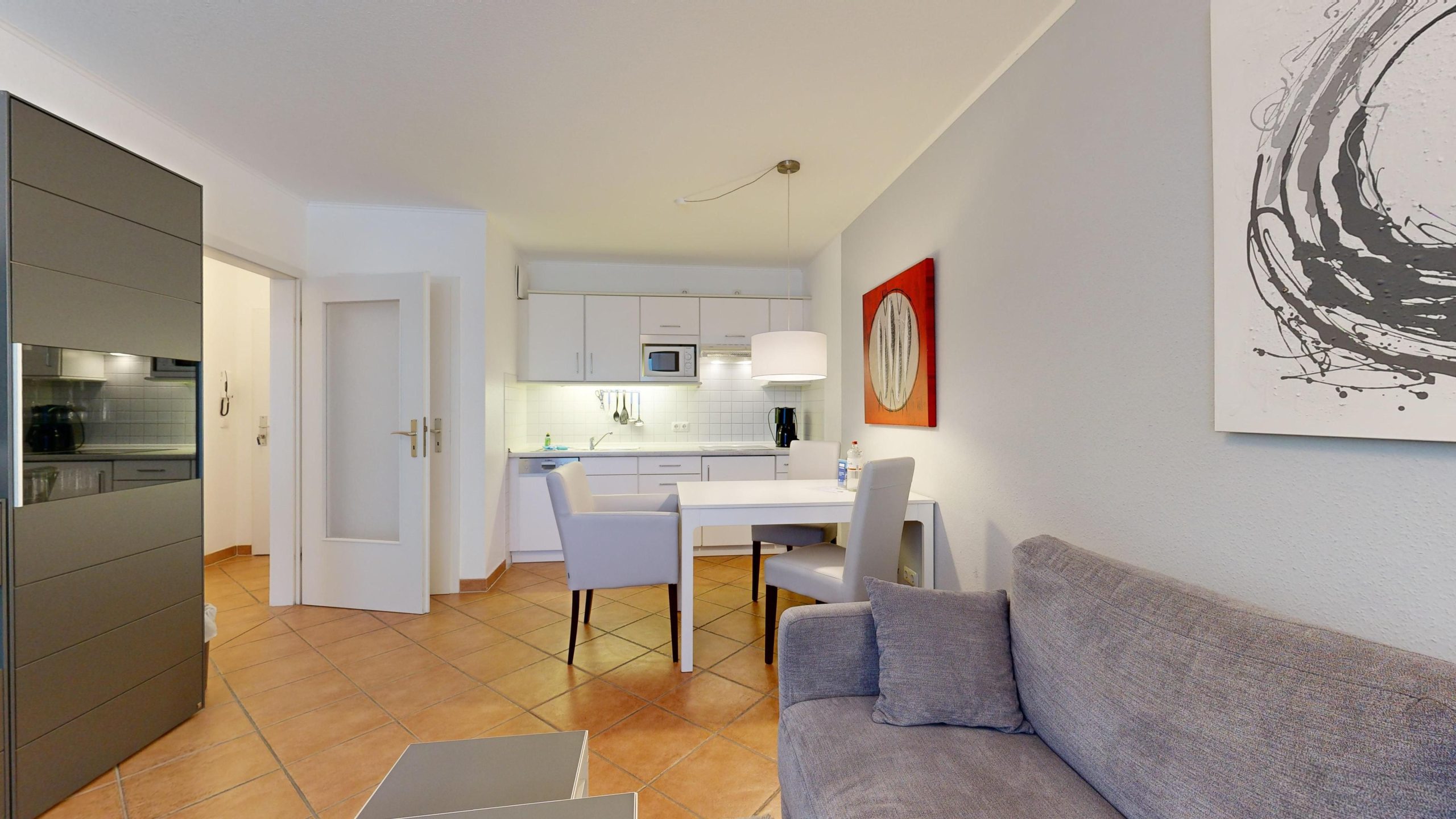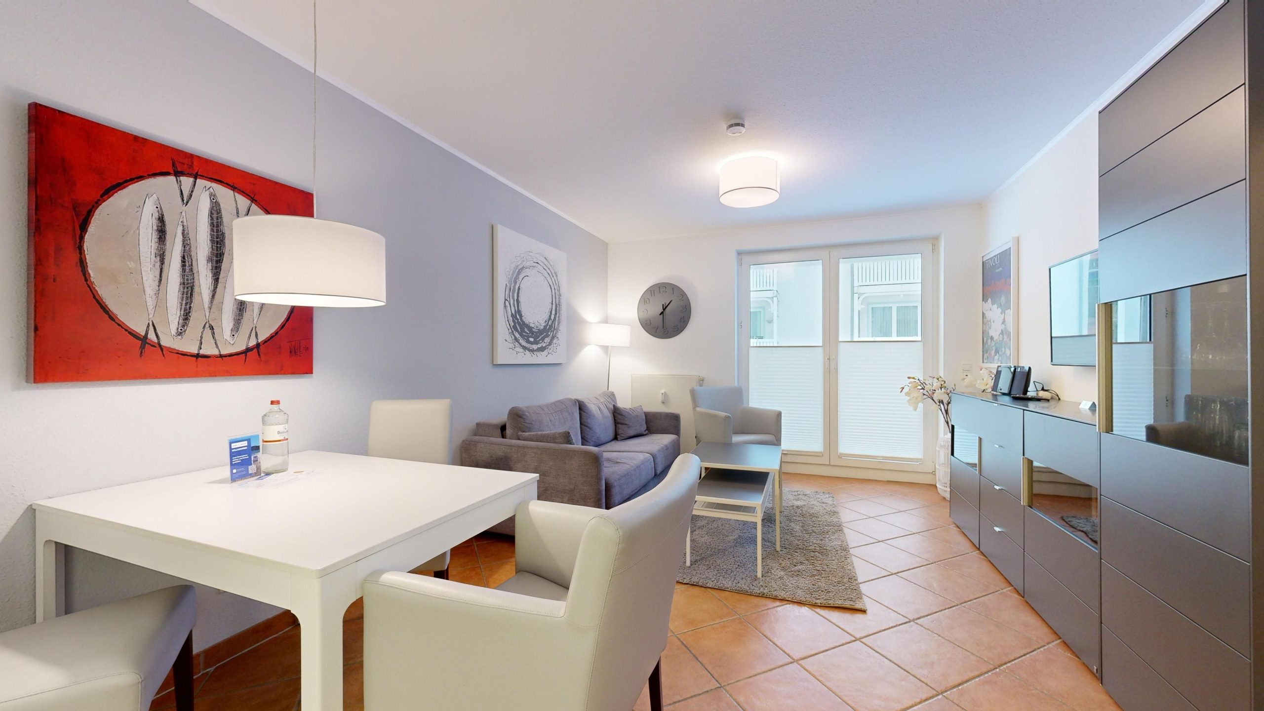 * Wohnzimmer: Couchgarnitur (Schlafgelegenheit für 2 Personen), Kabel-TV, Stereoanlage, Internetanschluss (WLAN), Esstisch