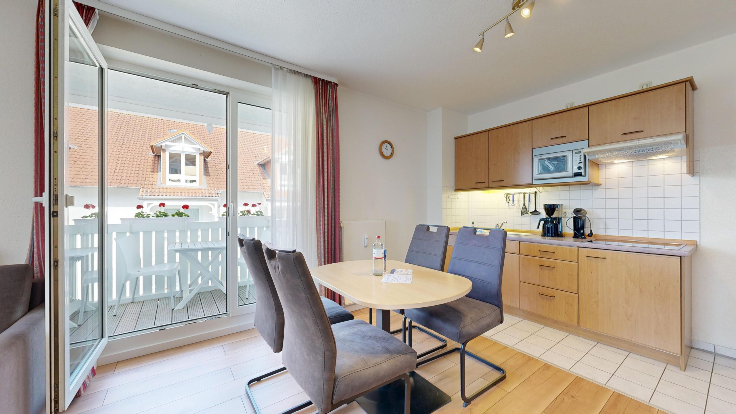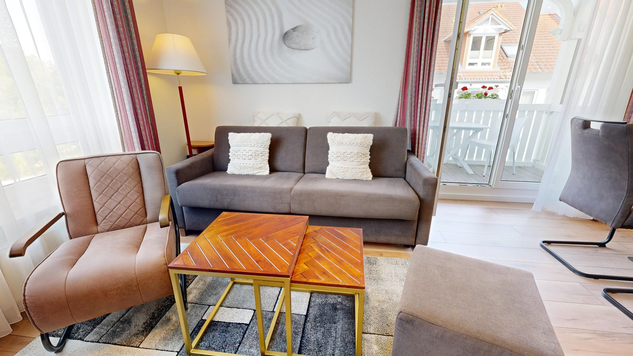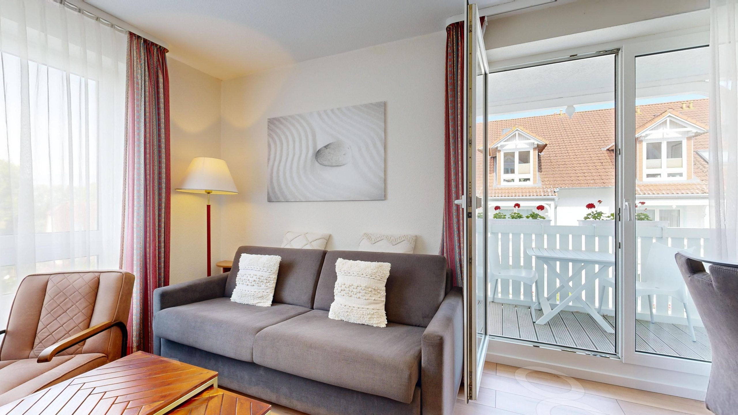 * möblierter Balkon