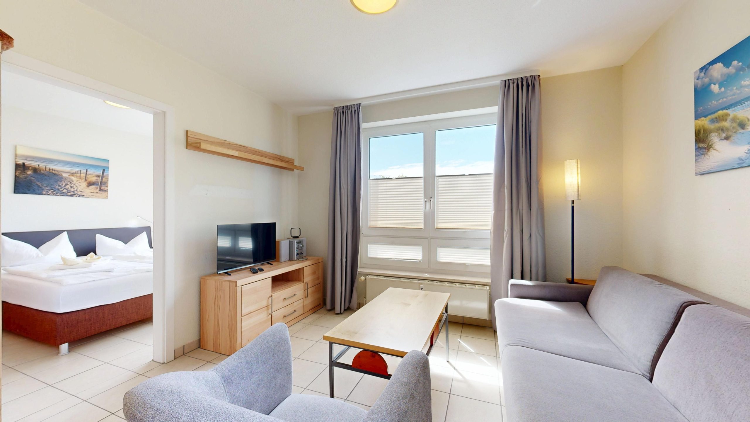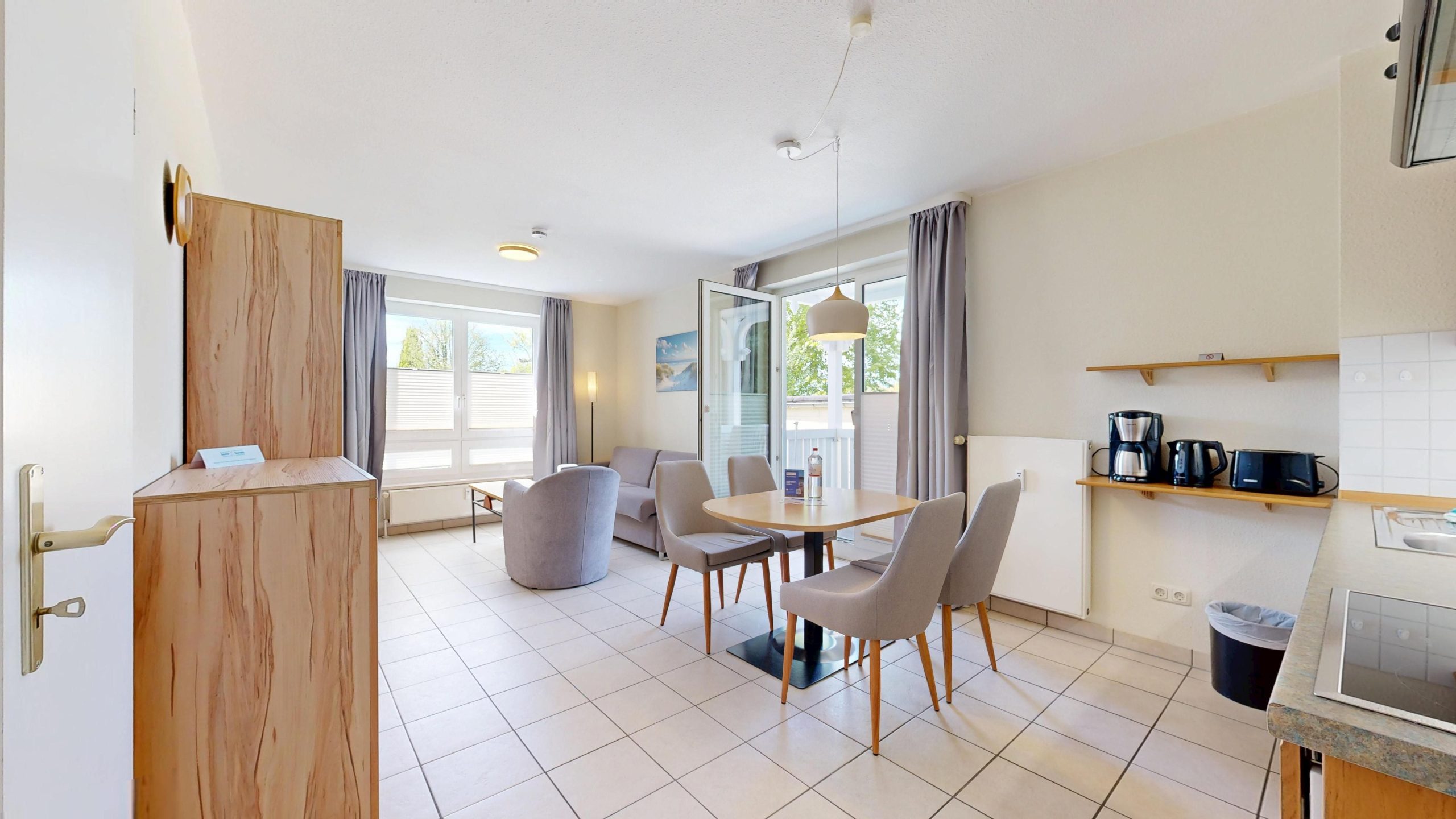 Ausstattung der Komfort-Ferienwohnung im EG, Typ B (2 Zimmer / 45 m²)