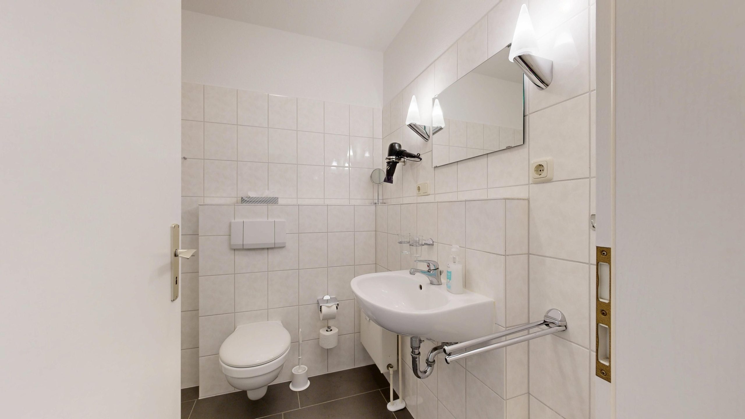 * Dusche (Tiefeinsteiger), WC, Haartrockner