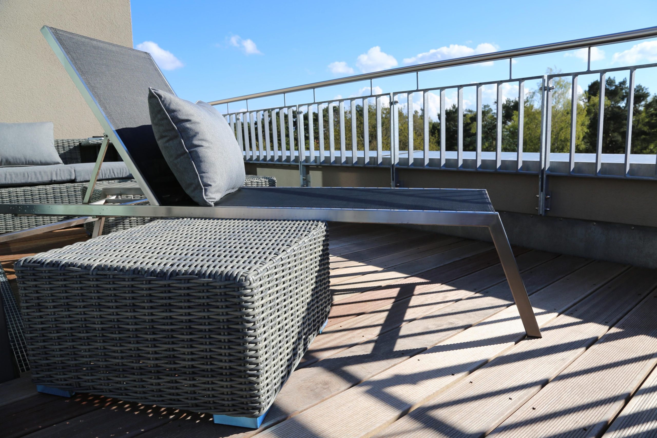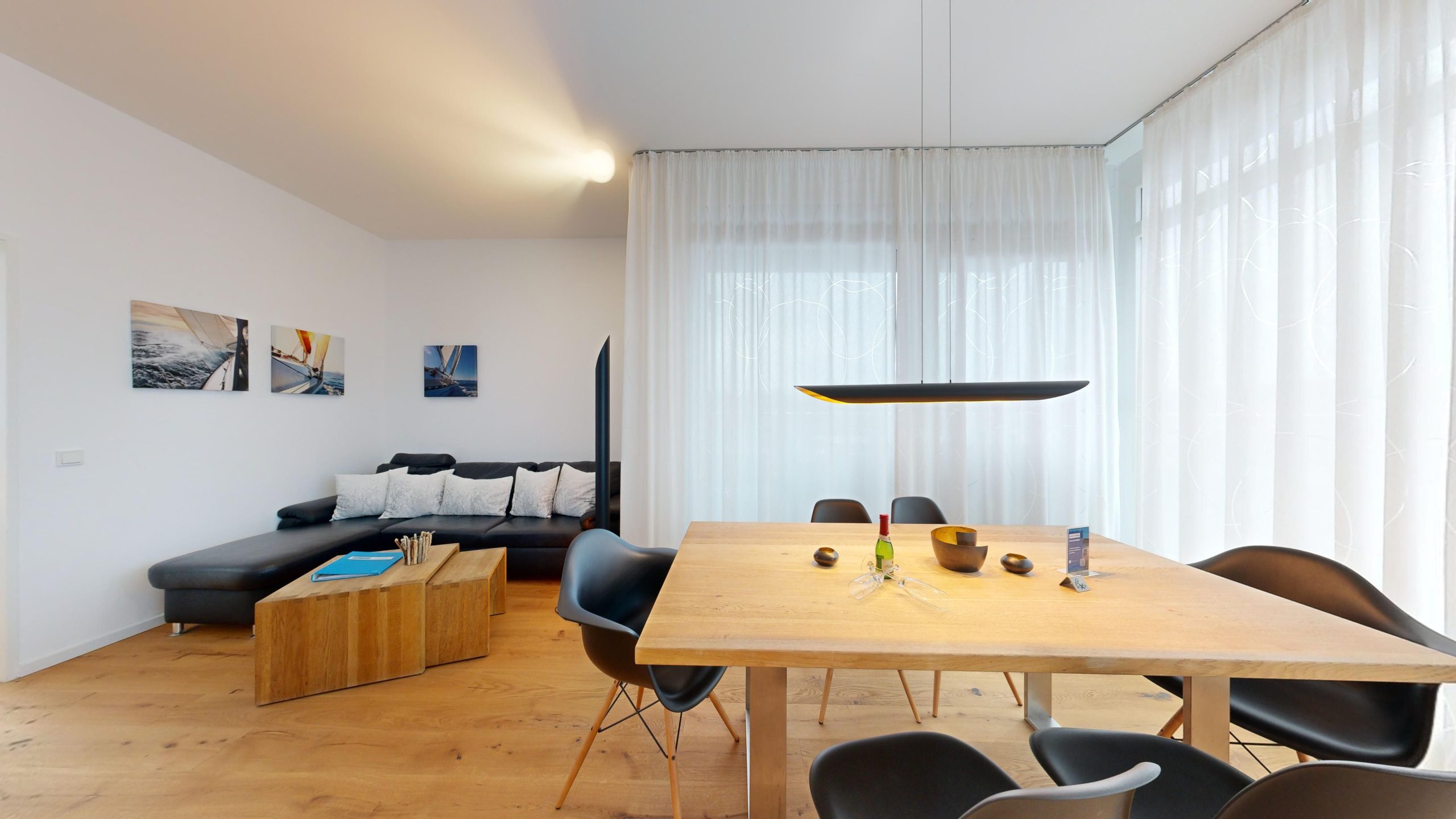 Moderne Ferienwohnung im Loft-Einrichtungsstil mit offenen, großen Räumen, Sauna, Kamin und Süd-TerrasseAusstattung der exklusiven Wohnung im 3. OG mit 2 Schlafzimmern (3 Zimmer / 106 m²):