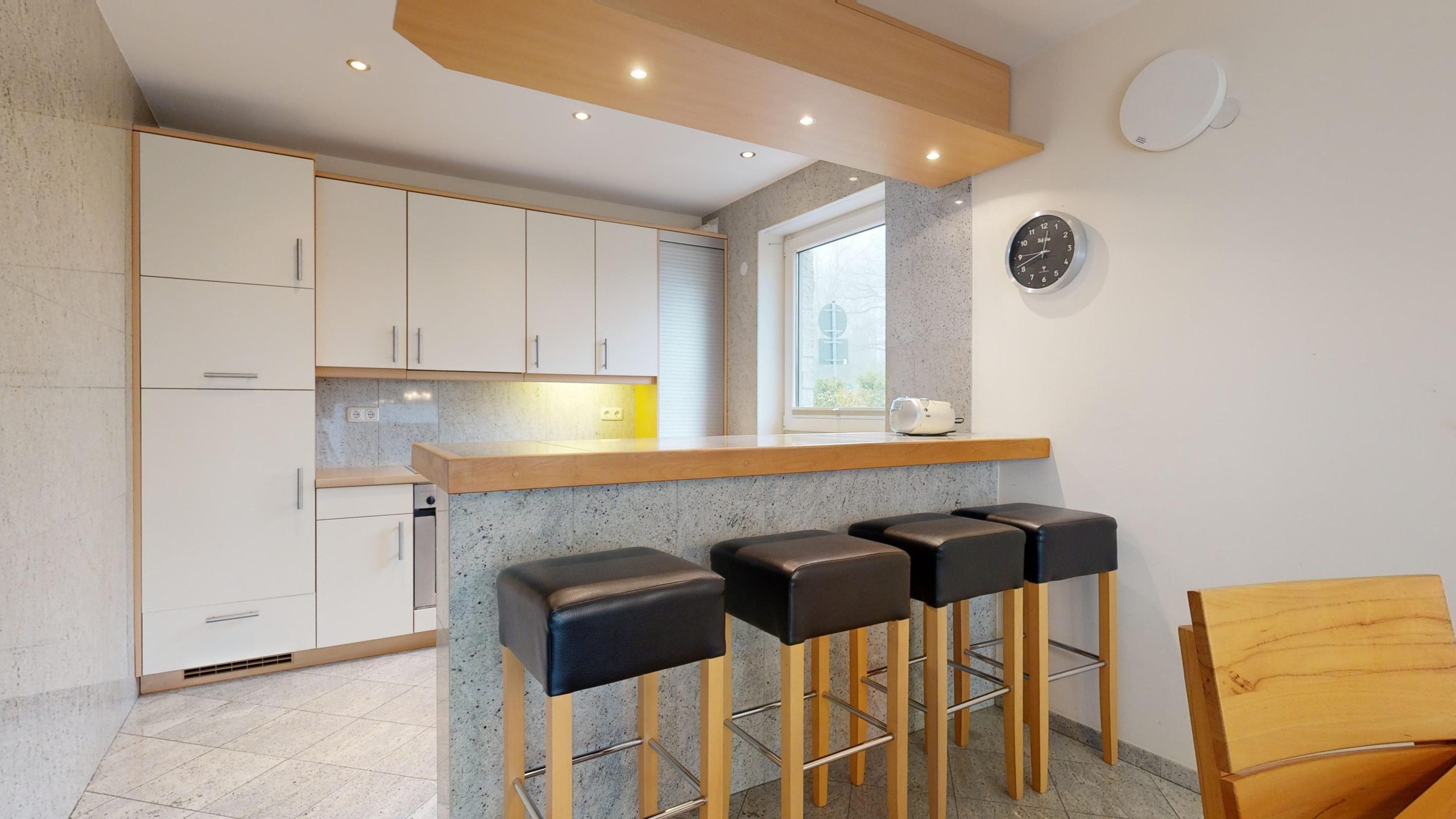 * Küche: Thekenartig abgetrennter Küchenbereich mit modernster Ausstattung: Spülmaschine, Ceranfeld, Mikrowelle, Backofen, Wasserkocher, Toaster und Kaffeemaschine