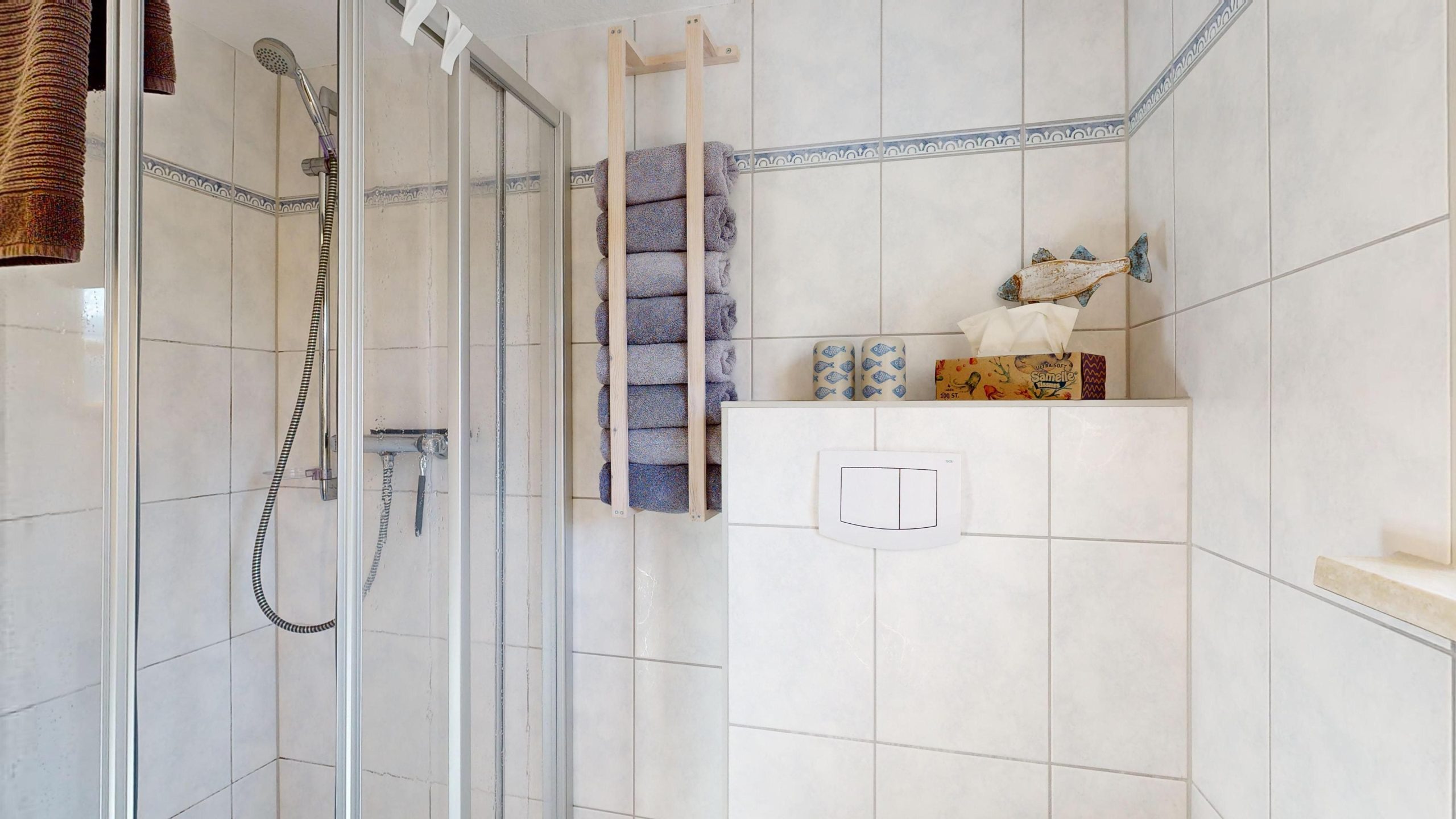 * 1 Badezimmer mit Dusche, WC und Föhn