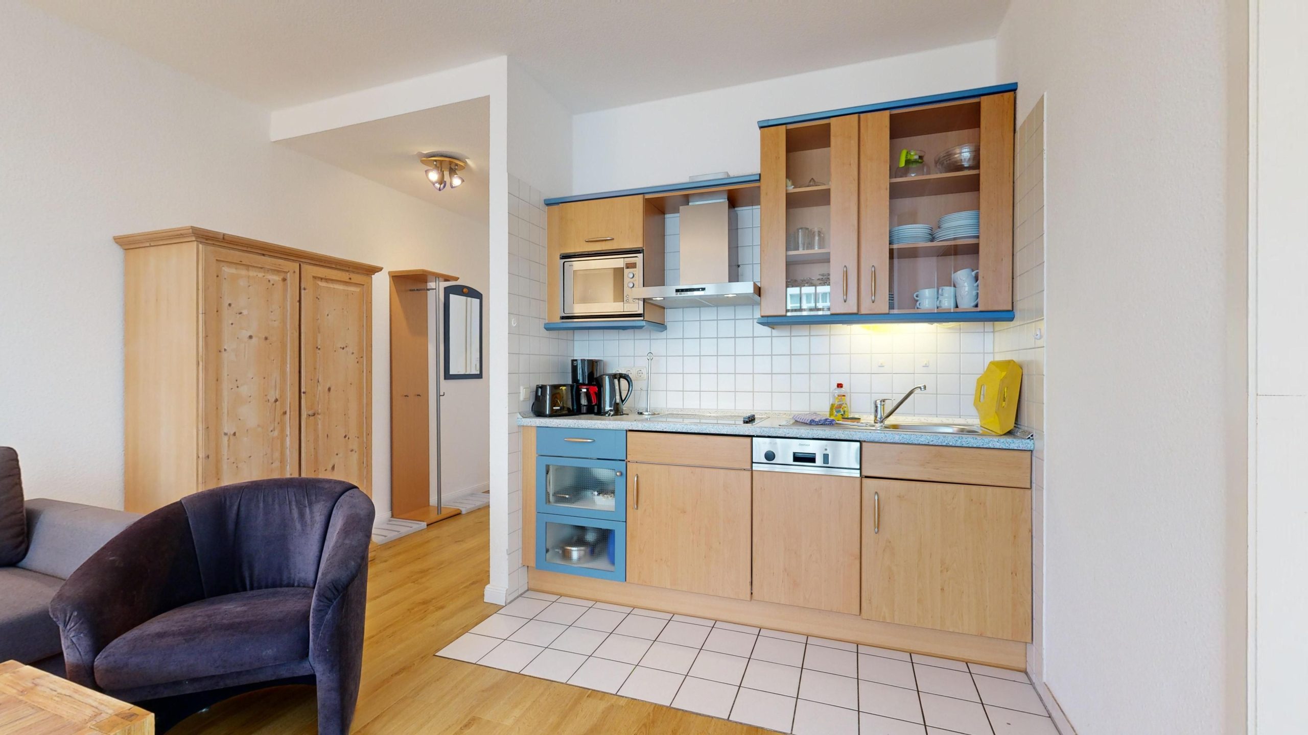Helle Ferienwohnung in StrandnäheAusstattung der Komfort-Wohnung im 1. OG (2 Zimmer / 50 m²):