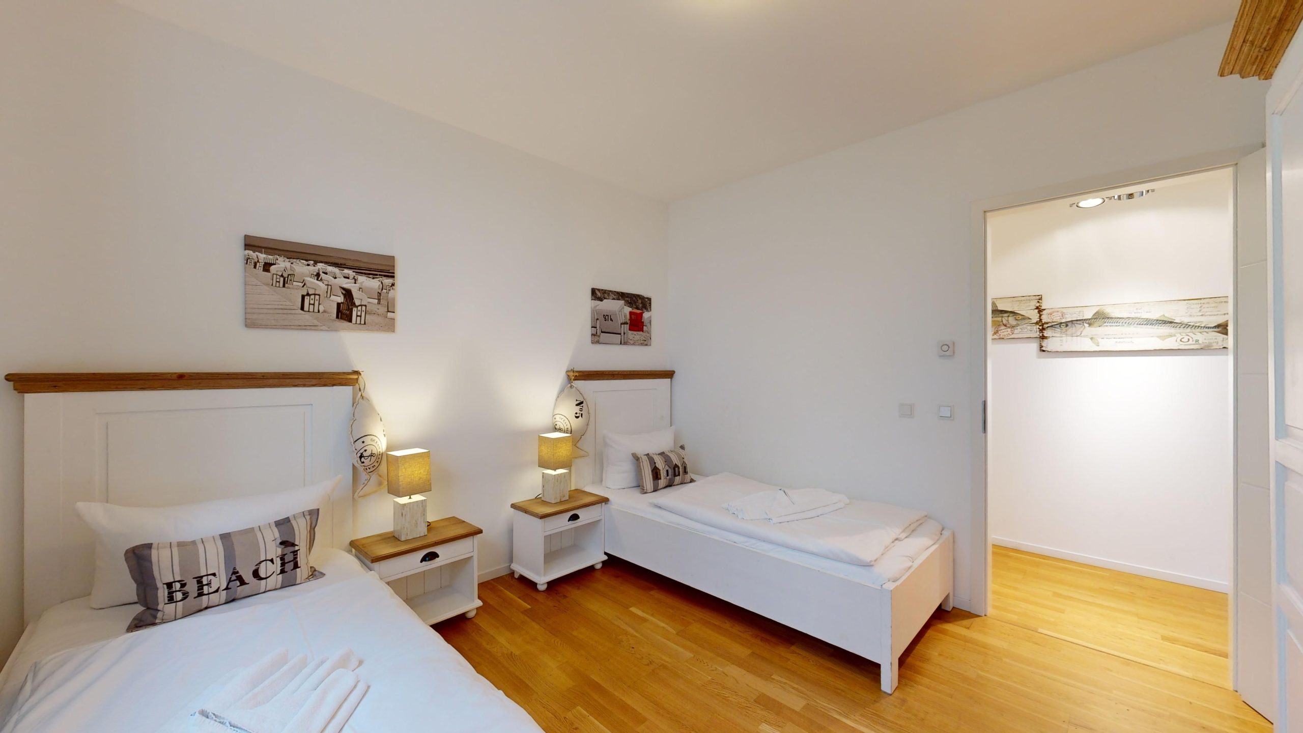 * 1 Schlafzimmer mit zwei Einzelbetten, Schrank