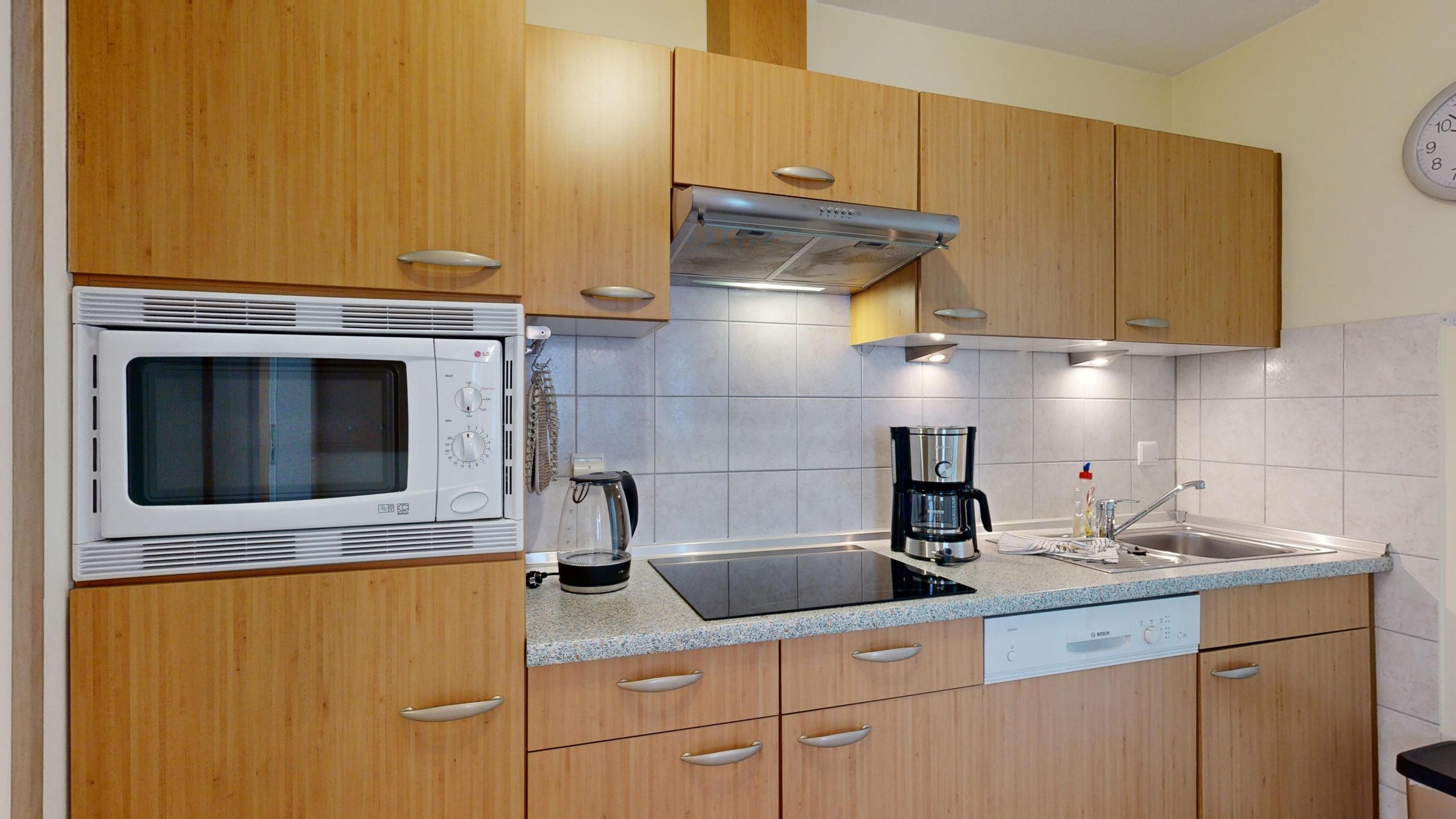 * separate gut ausgestattete Küche mit einem Induktionskochfeld, Spülmaschine, Mikrowelle,...