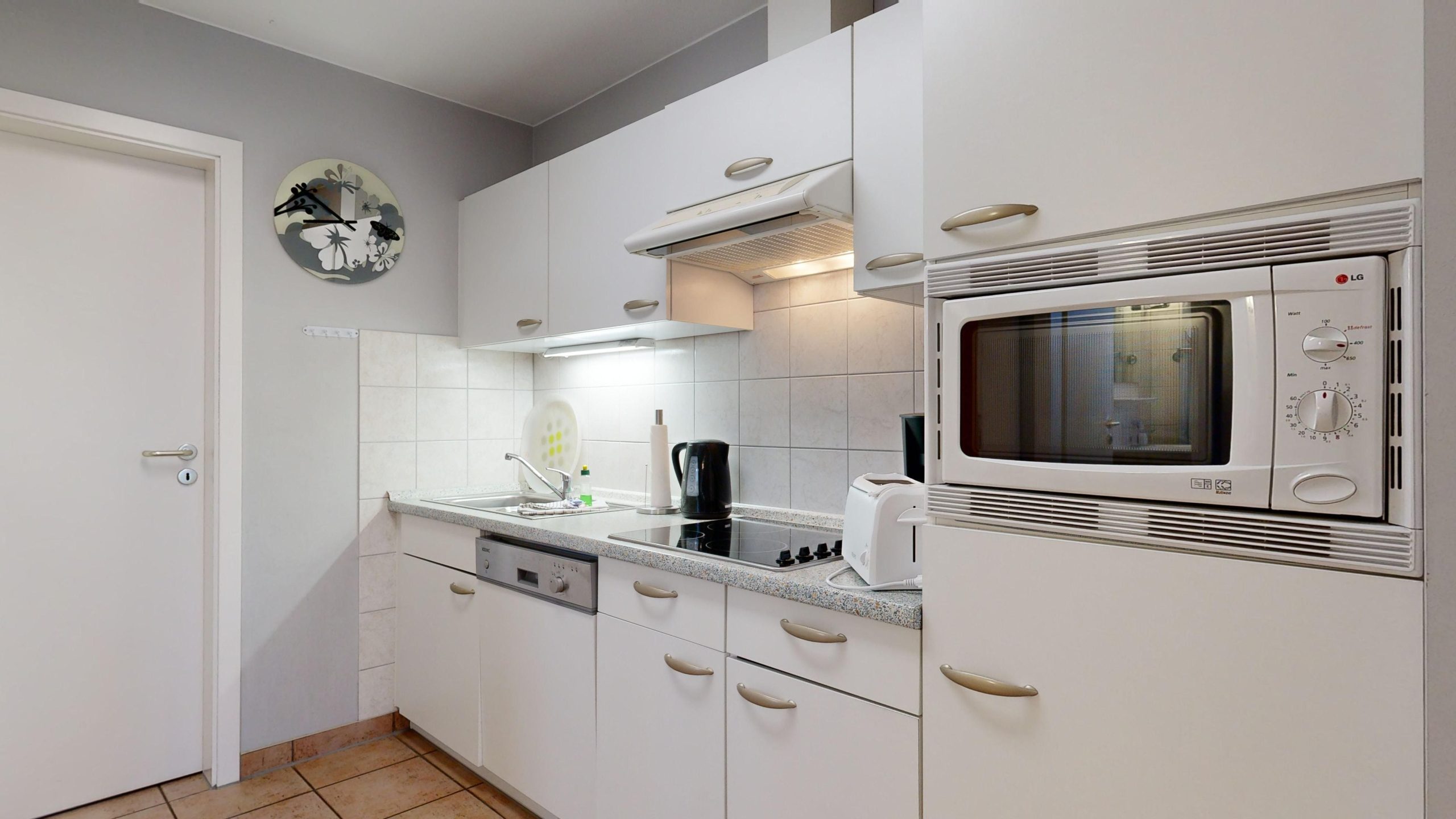 * Küche mit Cerankochfeld, Spülmaschine, Mikrowelle, Kaffeemaschine und Nespressomaschine, Wasserkocher,...