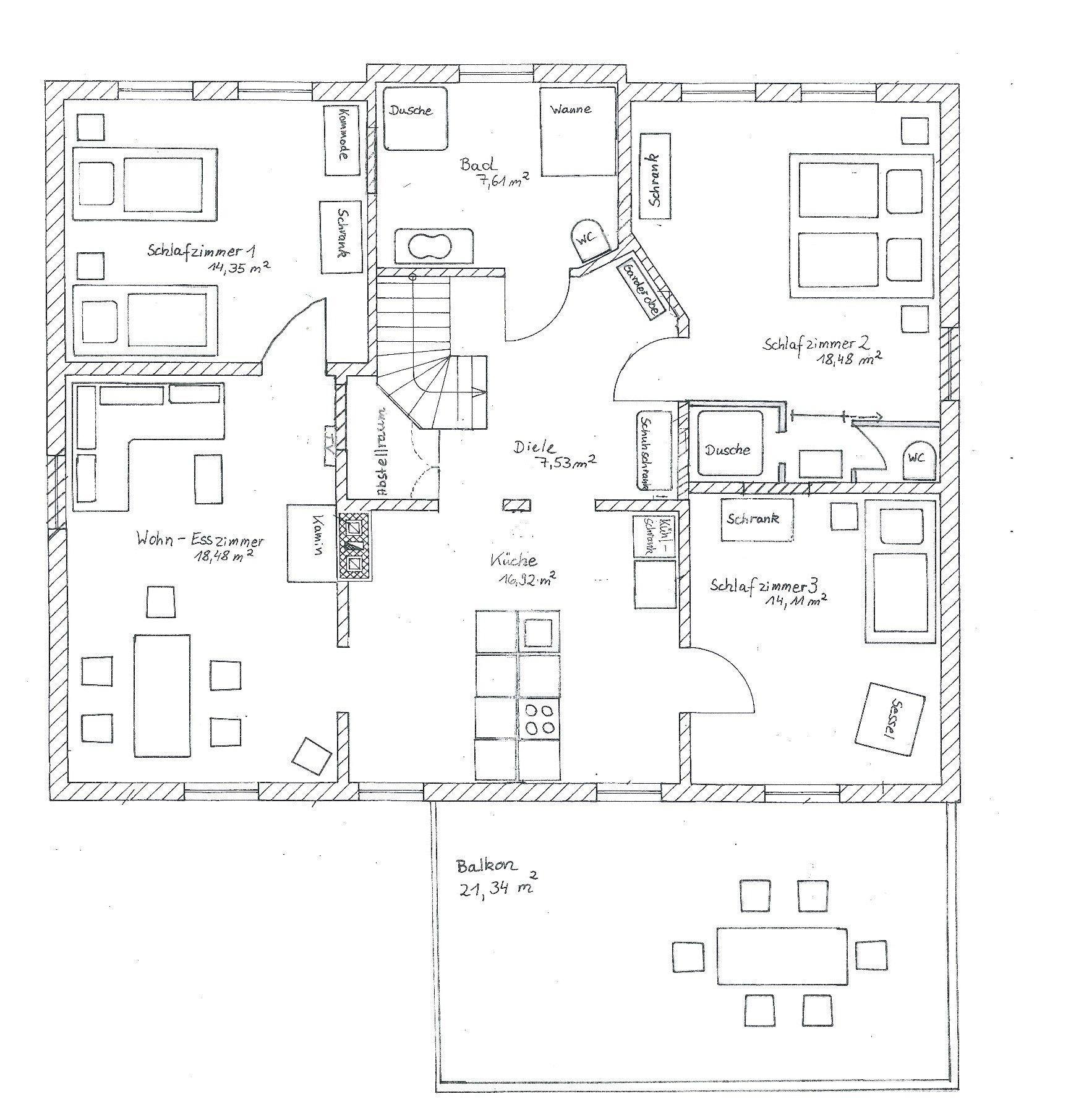 Die Wohnung ist geschmackvoll und praktisch eingerichtet. Der Parkplatz ist durch die Fugen des Kopfsteinpflasters leider sehr uneben. Wenn die Gartenmöbel im Fahrradschuppen lagern, ist nur ungenügend Platz für Fahrräder. Die Treppe ins Obergeschoss ist sehr steil, das Treppengeländer ist oben zu niedrig,um sicher die Treppe herunter zu gehen.