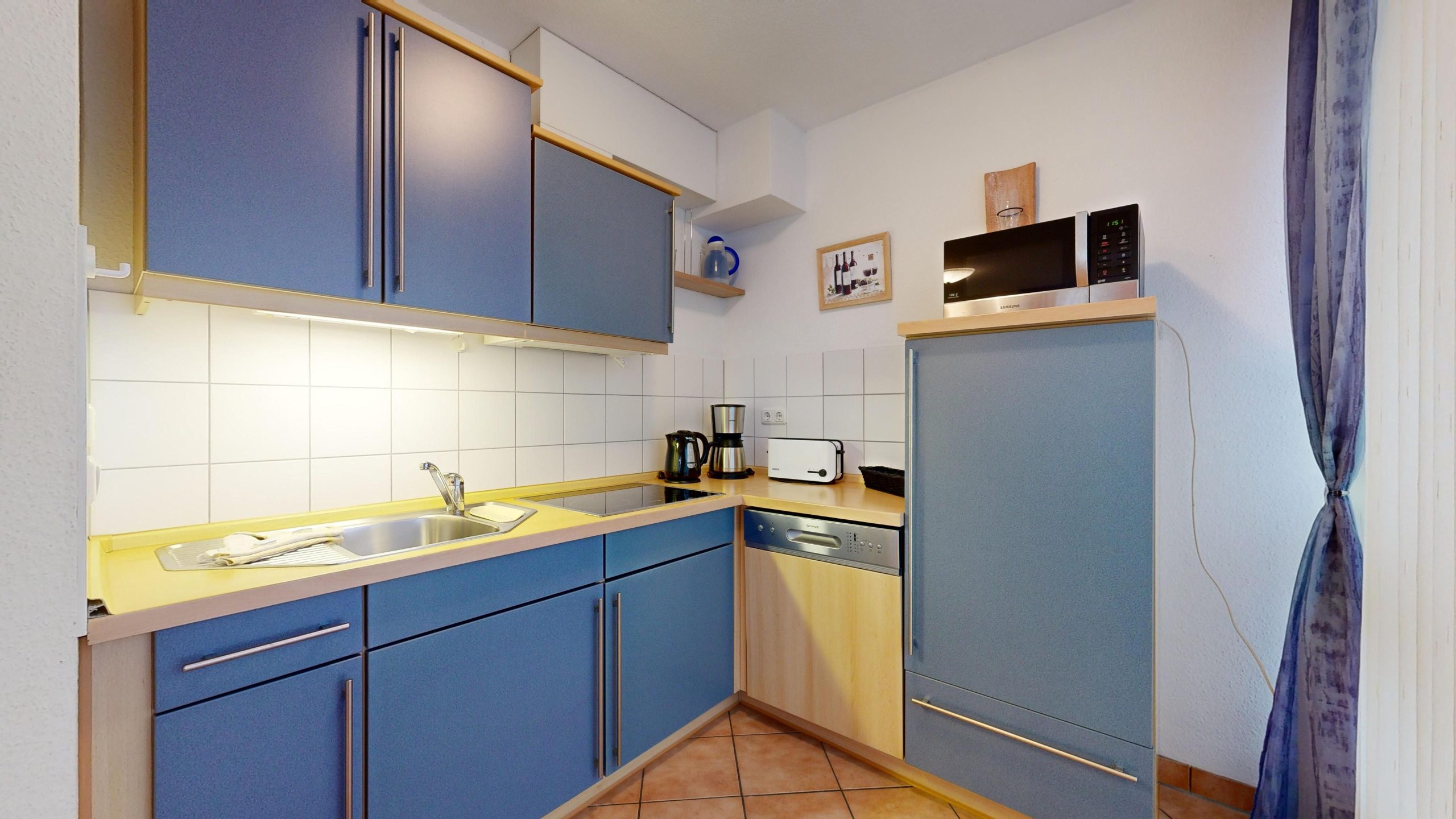 * Offene Wohnküche mit Spülmaschine, Cerankochfeld, Mikrowelle, Wasserkocher,...